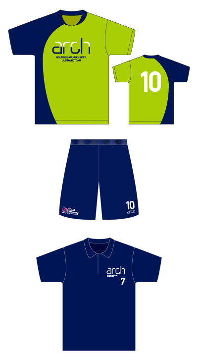 北星学園大学のアルティメットチーム、arch(アーチ)のロゴとユニフォームをデザイン。練習・応援用のポロシャツも作りました。